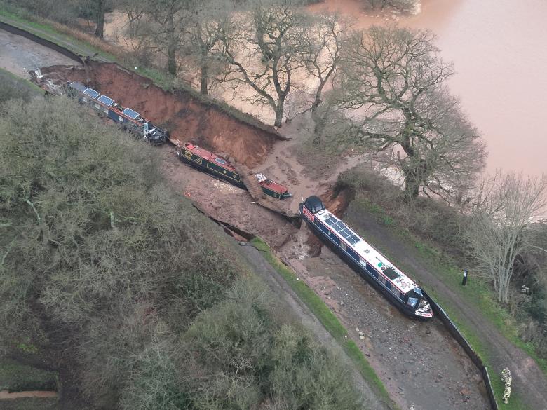 The Service was called to Shropshire Union Canal near Drawbridge, Chemistry, at 4.22am yesterday (Monday) to reports of a canal breach. This structural damage led to the beaching of four boats and the evacuation of 15 residents.