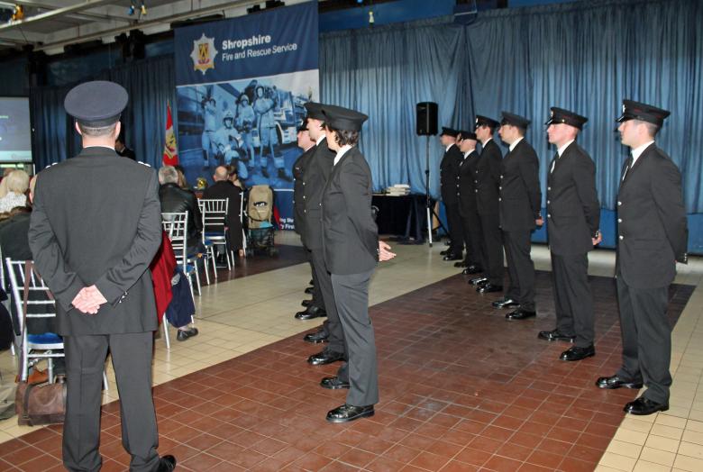 The 12 recruits attended a Passing Out ceremony at Shropshire FRS's training centre in Telford where Shropshire and Wrekin Fire Authority Chair, Stuart West, presented them with certificates to mark their successful completion of a tough 12-week training course.