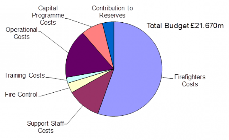 Around 65% of the total budget is spent on our staff: firefighters on the full time and part time duty systems, Fire Control staff, and non-uniformed support staff.