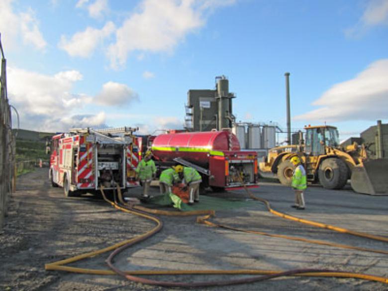 The crews were ‘mobilised’ to a scenario of a fire within a bitumen plant which requires large quantities of water to cool and extinguish.