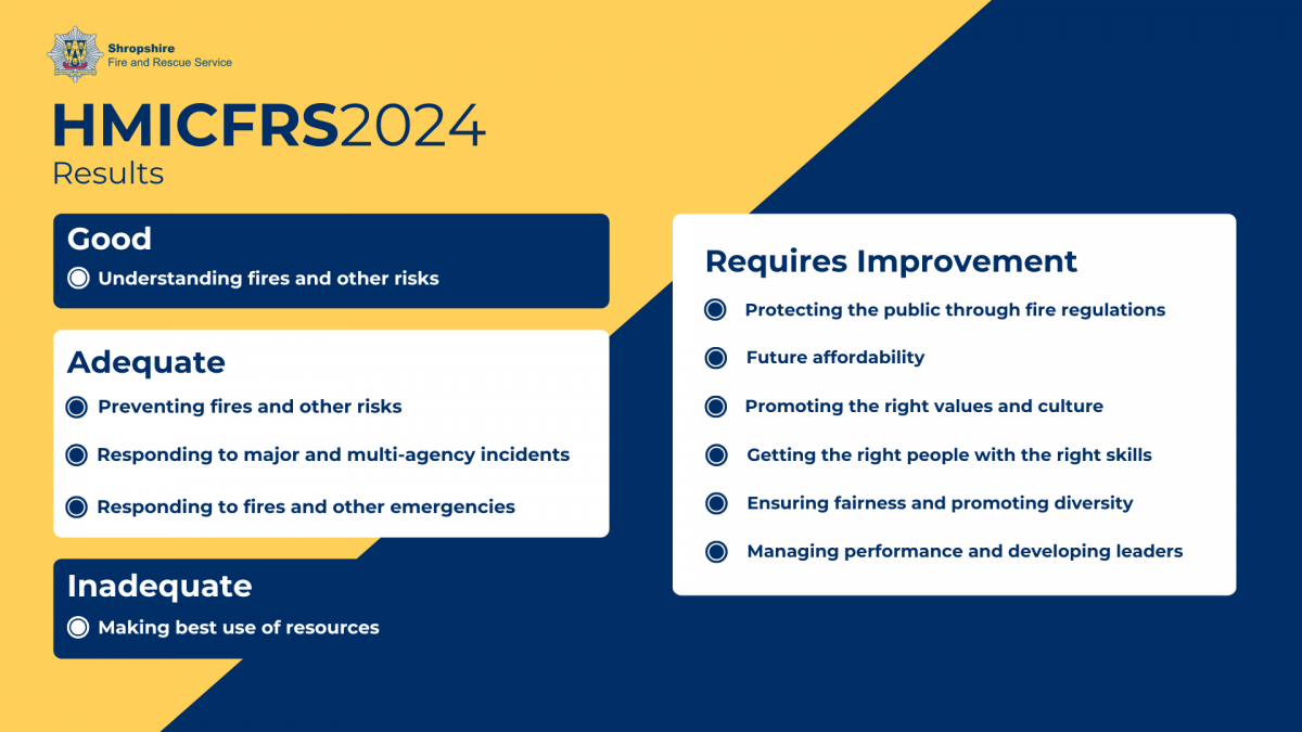 The full report can be found here: Shropshire Fire and Rescue Service 2023–2025 – His Majesty’s Inspectorate of Constabulary and Fire & Rescue Services