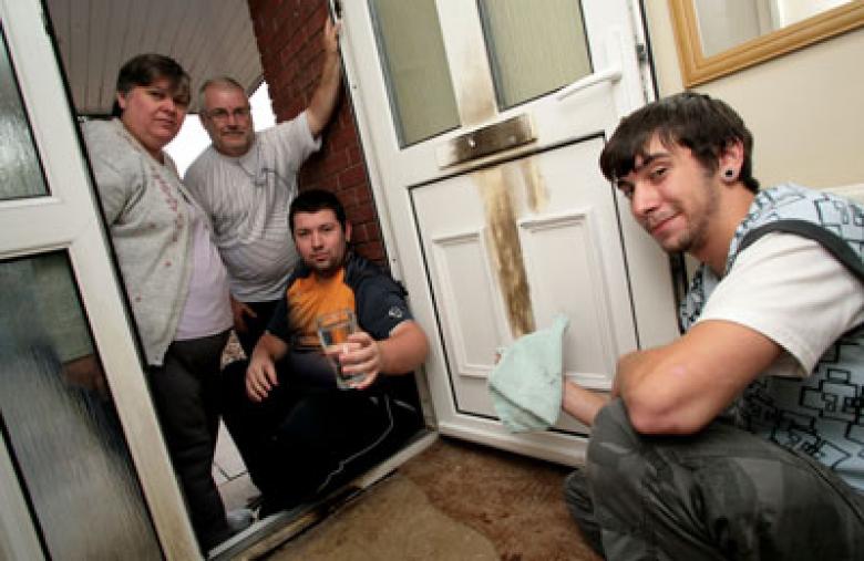 Son Aaron (23) took a large glass of water from his mum's hand while his brother Nathan (17) grabbed a towel and the two young men put out the fire.
